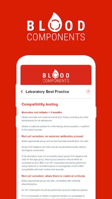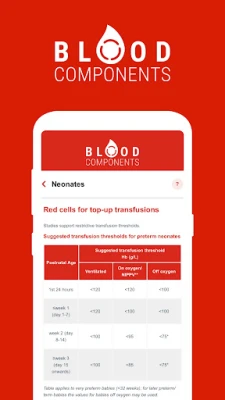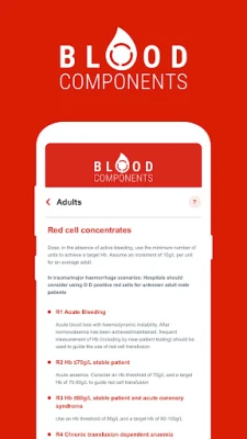 Blood Components App summarises relevant national guidelines to act as a guide for clinicians to facilitate appropriate use of blood and enable robust documentation of indications.