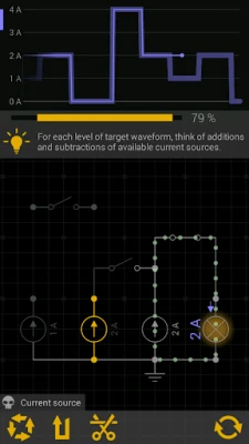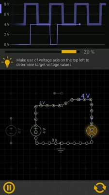 The objective is to build circuits that generate electronic signals of some shape. You will get to make connections, set component values, and operate switches to solve the puzzles. Circuit Jam will also teach you how to add and divide voltages and currents, work out equivalent resistance and capacitance, and use Ohm's law and Kirchhoff's laws. As you complete puzzles, new sandbox components are unlocked.