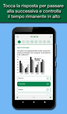 This app is built on a database of 1000 questions with their corresponding annotated solutions, and enables you to generate an unlimited number of different tests and reach a better preparation. After downloading the app, you can simulate a full test of 60 questions, similar to the actual official test, or you can choose to check your preparation in a quicker way by completing short tests with 20 questions, in order to optimize your time. In both cases, you can pause the test and resume it later, you can submit it and check the solutions, or you can abandon it and start a new test.