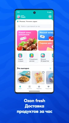 Если хочется чего-то свеженького – закажите продукты на Ozon fresh! Мы быстро доставим вкусные продукты для всей семьи: от помидоров с рынка и мраморного стейка до фермерского творога и теплого круассана. А ещё у нас вы всегда найдёте скидки и специальные предложения. Мы уже есть в Москве, Санкт-Петербурге, Краснодаре, Ростове-на-Дону и во многих других городах России. Выбирайте свежее – заказывайте любимые продукты на Ozon fresh.