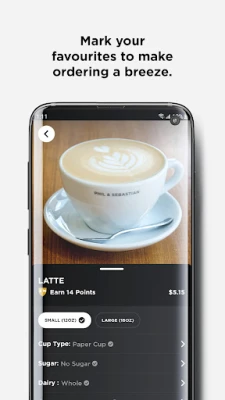 • Check-in to earn points on orders placed directly with a cafe baristas